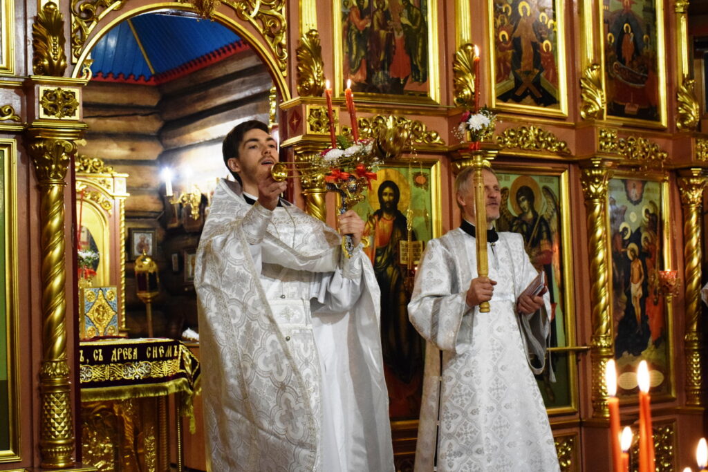 Его Преосвященству сослужили руководитель епархиального отдела религиозного образования и катехизации иерей Александр Симора, руководитель епархиального отдела по взаимодействию с обществом и СМИ иерей Евгений Волков и диакон Александр Чипсанов.